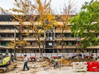 清拆後的青洲木屋區,可見背後已拆卸的批發中心和澳電等建築,即今天青茂口岸的前身。