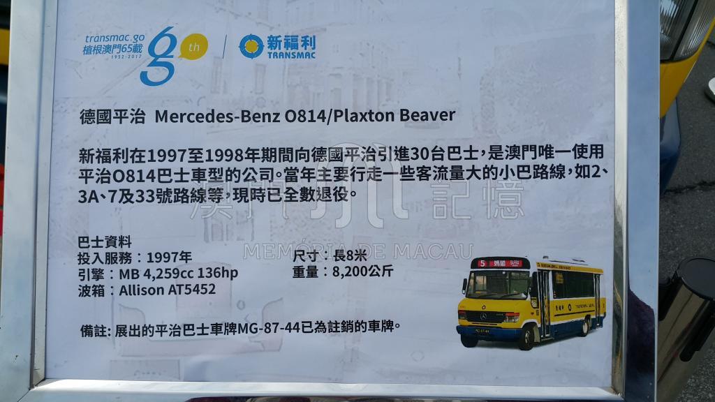 新福利為慶祝 65 周年,特別將一部早於2010年下旬退役保留的德國平治O 814 D空調單層巴士,經徹底修復及回復服役時樣式展出,由2017年11月25日至2018年1月28日,於澳門科學館舉行「新福利。歷程」專題展覽,展覽展出與巴士有關的舊物及相片。