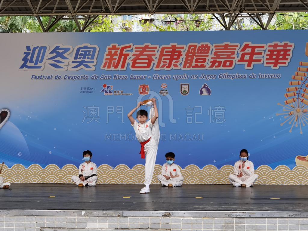 體育局及多個體育團體在祐漢街市公園舉辦迎冬奧新春康體嘉年華,鼓勵居民提升對體育運動的興趣。小朋友在嘉年華表演武術,功架十足。