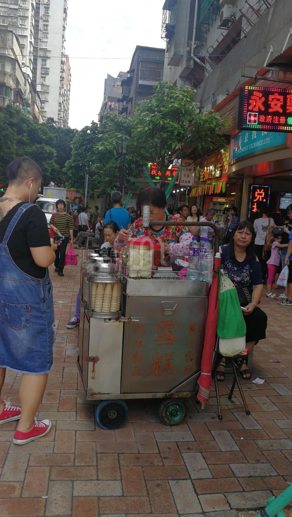 關閘馬路售賣雪糕的流動車仔檔,舊時係三角花園附近擺檔,經常有學生仔幫襯,是北區很多人的童年回憶。