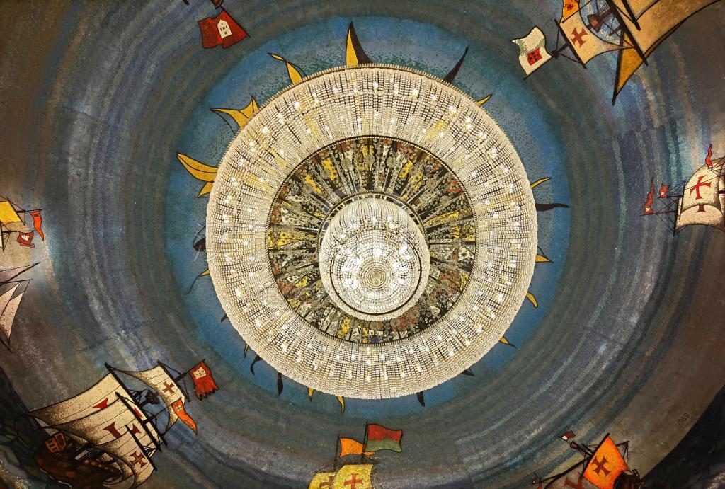 澳門葡京酒店的大航海時代的馬賽克壁畫,在1962年由墨西哥藝術家鮑博設計,畫裏描繪葡萄牙遠洋船隊帶著基督騎士團十字徽號、五盾旗幟縱橫海洋的場景,是葡萄牙航海輝煌歷史的藝術體現。