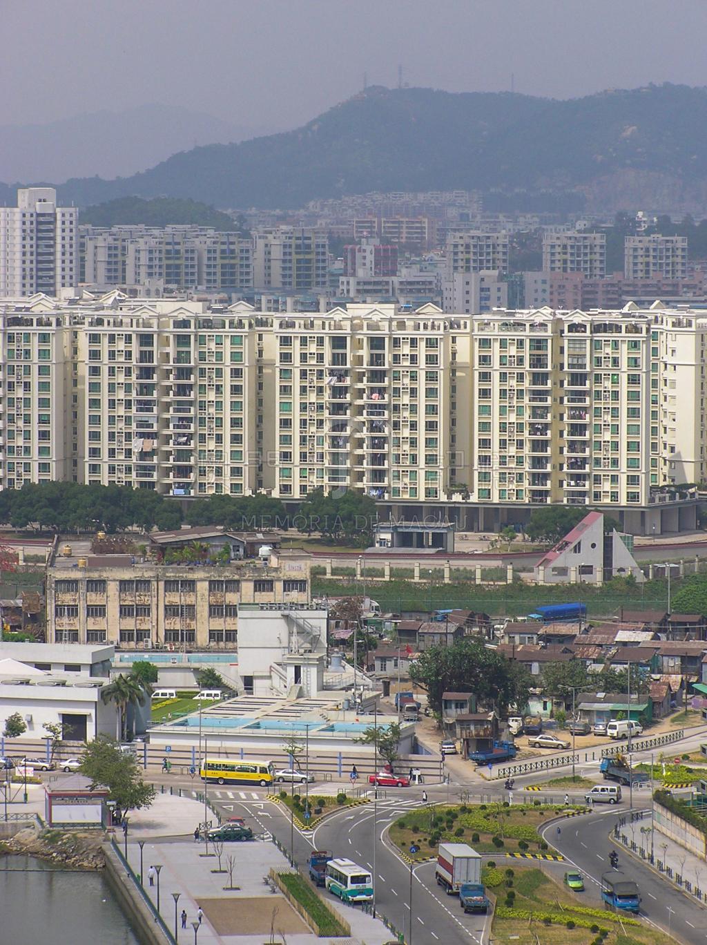 現時公共房屋青濤大廈的位置,當年在遠處可見青洲與拱北只是隔了一河的距離。