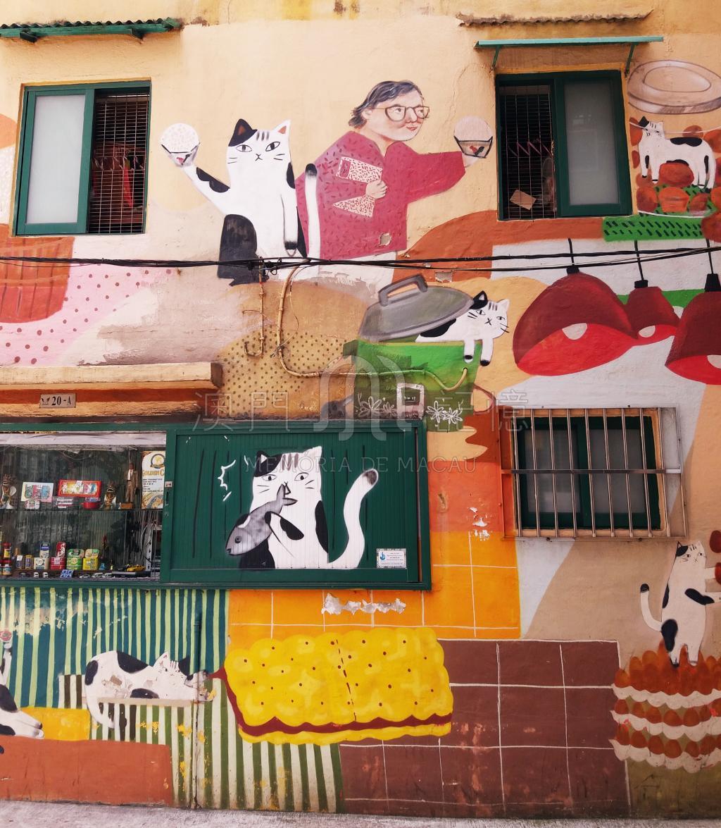 永昌隆米舖屹立多年,近年在外牆上繪以貓為主題特色壁畫。