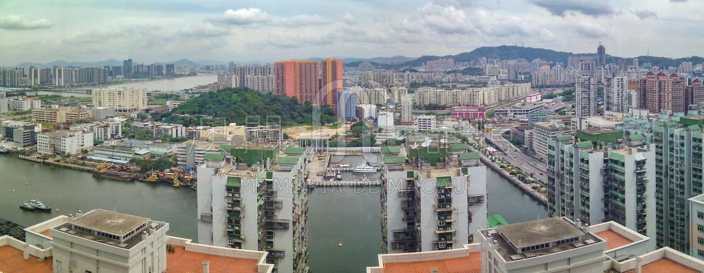 可見整個青洲區,聖若瑟六校已被拆卸,而「綠洲」、青洲坊大廈、青蔥大廈、青茂口岸等還未落成。