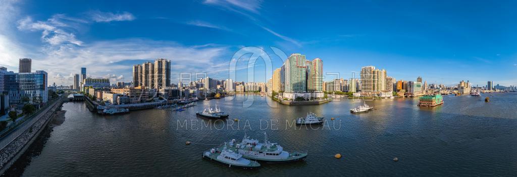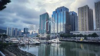 青洲港外望,180度下的筷子基北灣,新與舊完美的融合。