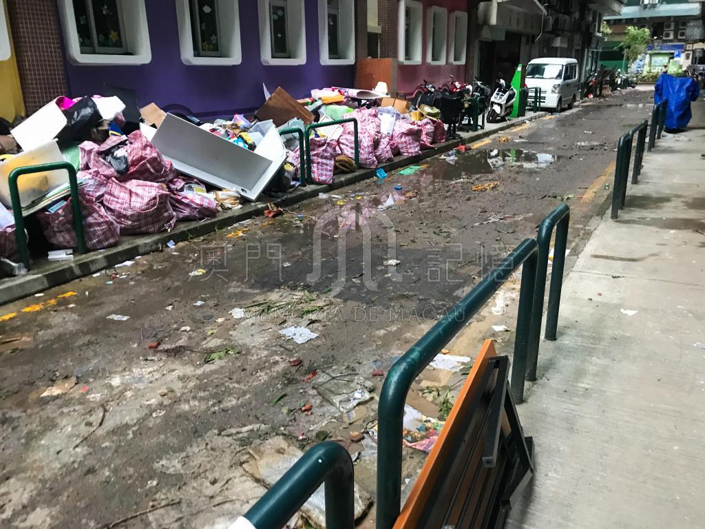2017年天鴿風災過後,全城街道成為流動垃圾站,無數垃圾等待清理。