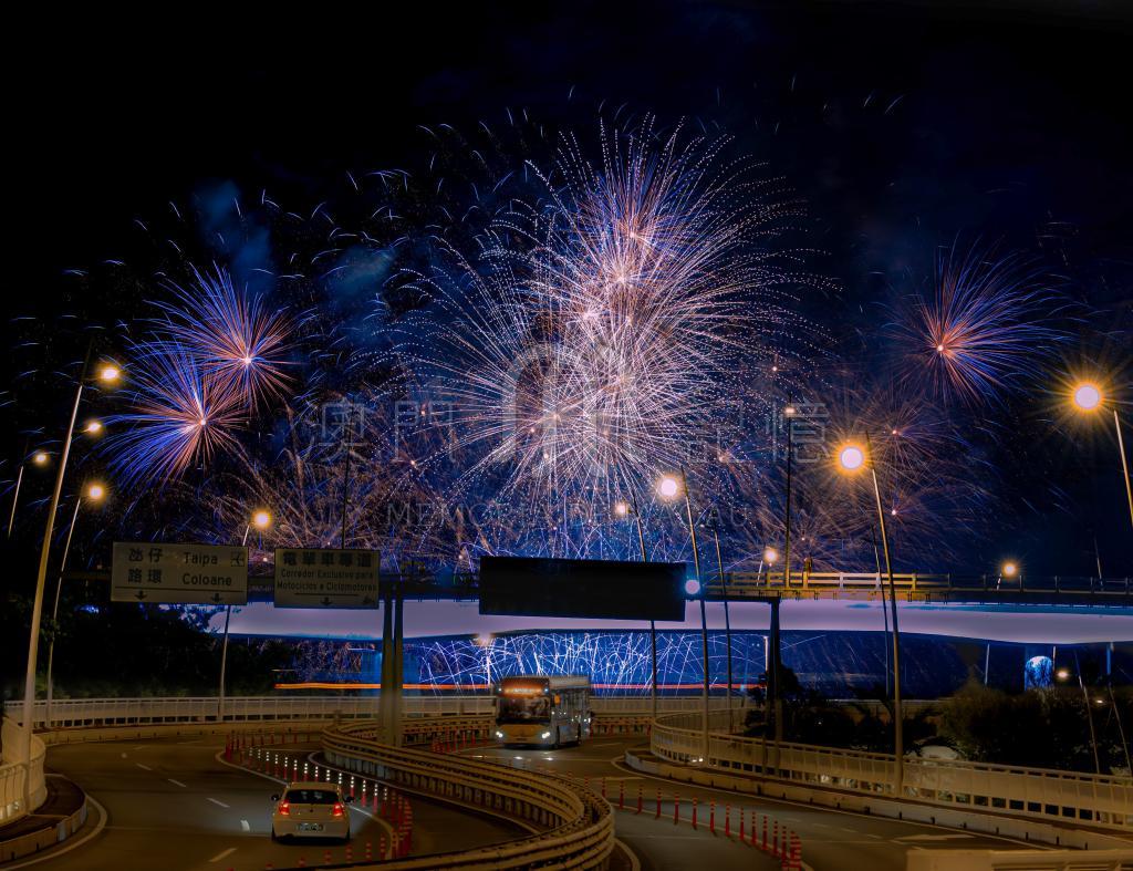 澳門2025國際煙花匯演英國場次,璀璨的煙花綻放在西灣大橋上,為澳門增添一絲童話夢幻的色調。