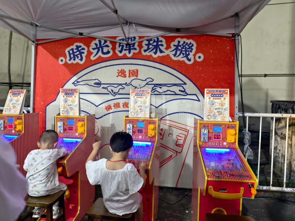 小朋友於北區大笪地 · 情懷夜繽紛的活動中體驗彈珠機的樂趣。