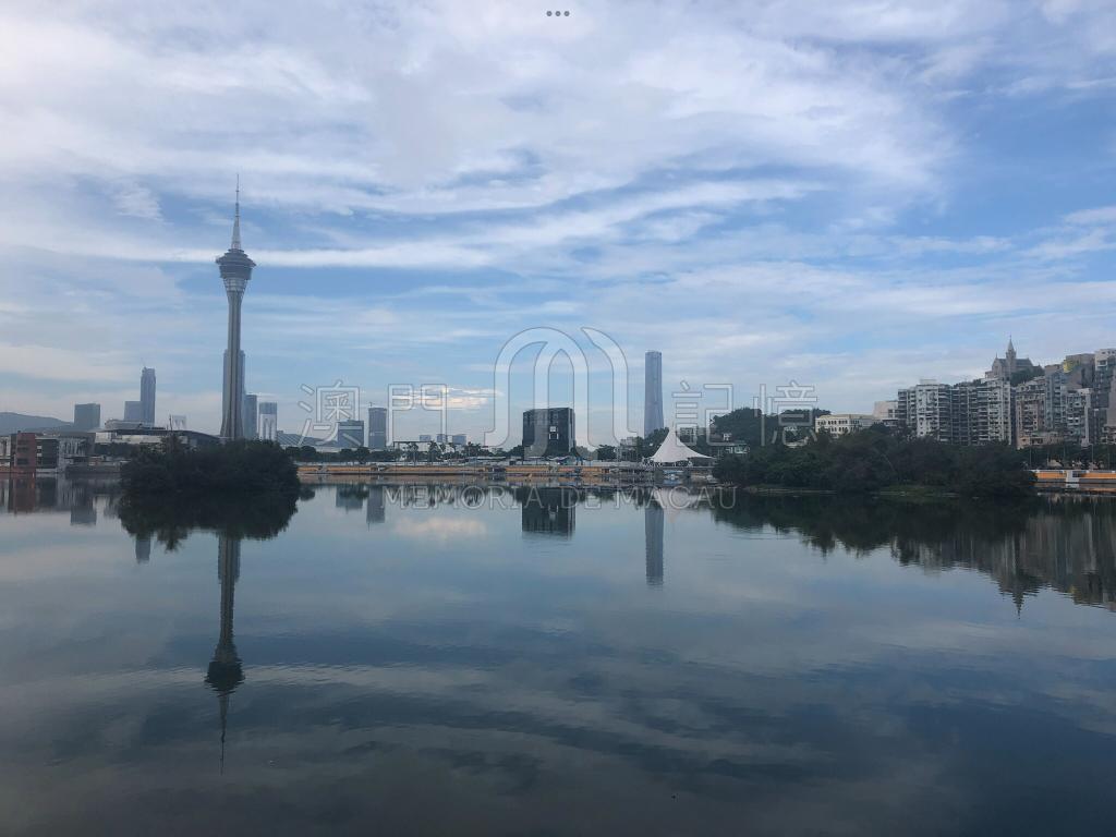 新冠 首年,心情有點沉重不安。某日上班途中,偶而望望南灣湖,留意到眼前旅遊塔等建築物和它們在平靜湖面的倒影,像是天空之鏡般漂亮,心情也開朗了。