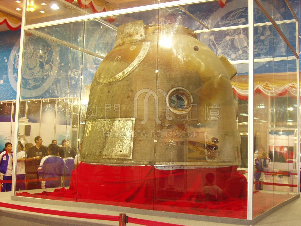 「中國首次載人航天飛行展」於2003年11月5日至7日在澳門舉行,展覽由澳門特區政府及中國載人航天工程指揮部主辦,大受居民和遊客歡迎,一連三日共吸引123,999人次入場,盛況空前。這次展覽展出「神舟五號」飛船返回艙、宇航服、航天食品、返回艙專用降落傘、九米高的火箭模型、專程帶往太空的澳門特區區旗,及有關中國航天發展歷史圖片資料等。
