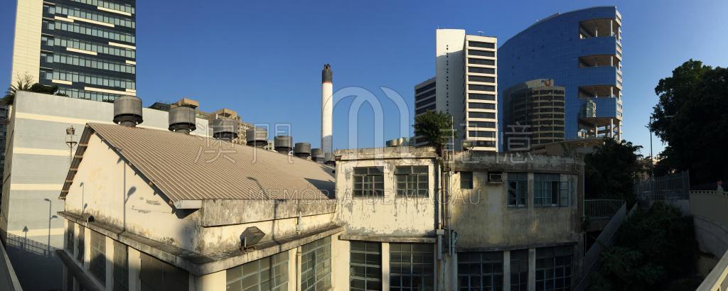圖中可見早期的發電廠建築,及後期興建的煙囪
