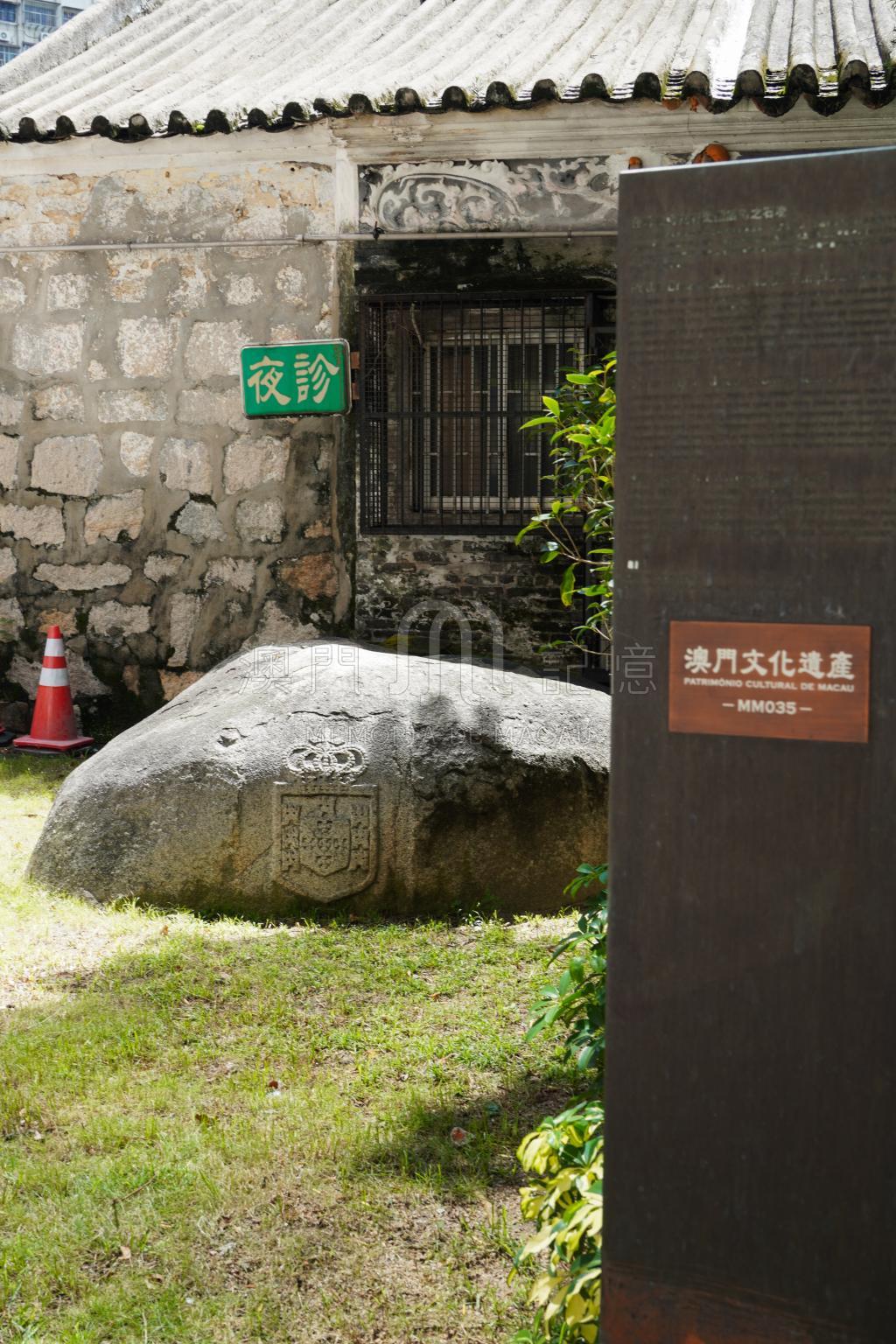 在蓮峰廟門外,有一塊刻有葡國盾徽的石塊,又稱為亞婆石,為葡萄牙殖民澳門時所立。石上刻有「1849年8月22日」的字樣及葡國盾徽,用來紀念於上述日期在此地遇刺身亡的澳葡總督亞馬留。
