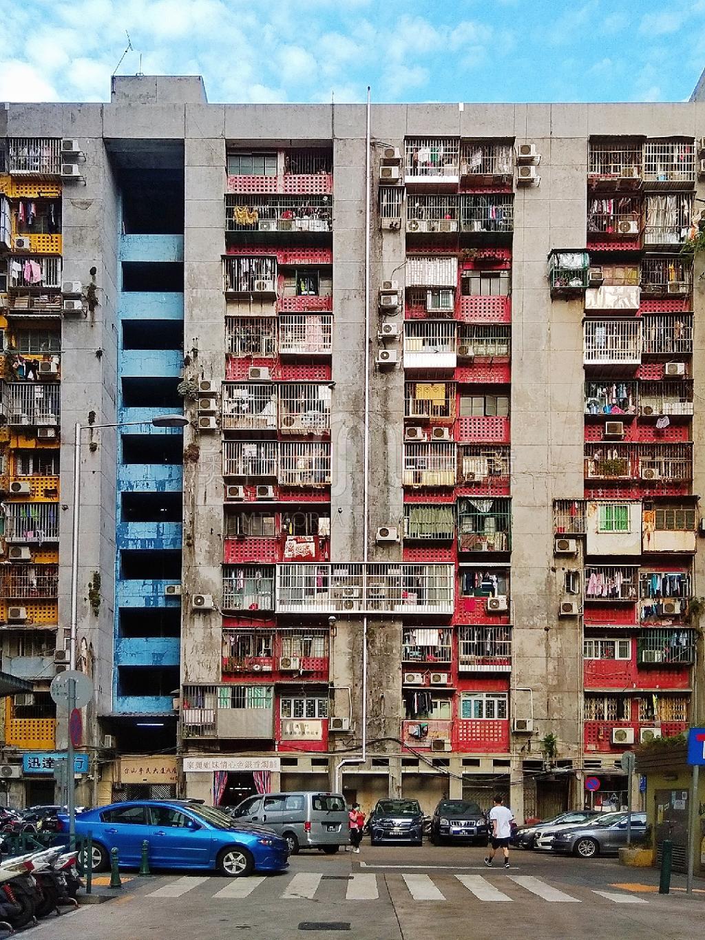 位于近关闸與青州之間的舊屋, 颜色和幾何设计独特, 人流复雜, 環境卫生条件差。