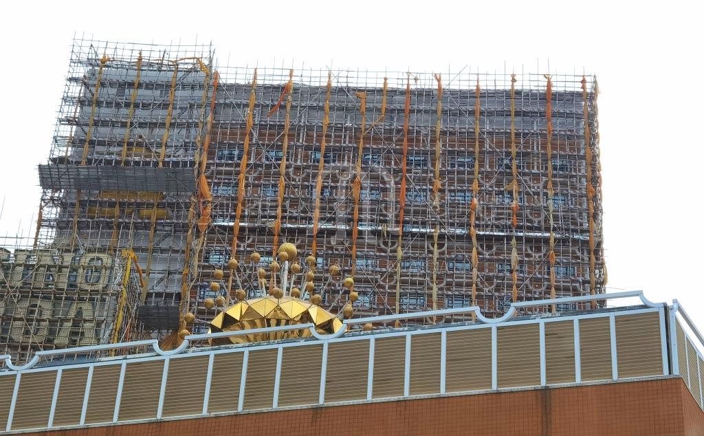 超強颱風將會襲澳,在街道上有各式各樣的防風、防水浸的措施,而工地也把布料紮好,減少受風面積。