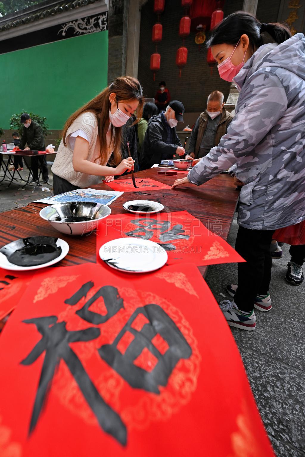 團體在觀音堂正門舉辦“癸卯兔年送福到萬家”寫揮春活動,邀請本澳多位書法家即席揮毫,共同寫揮春、對聯及祝福字句等,贈予街坊,提早送福。
