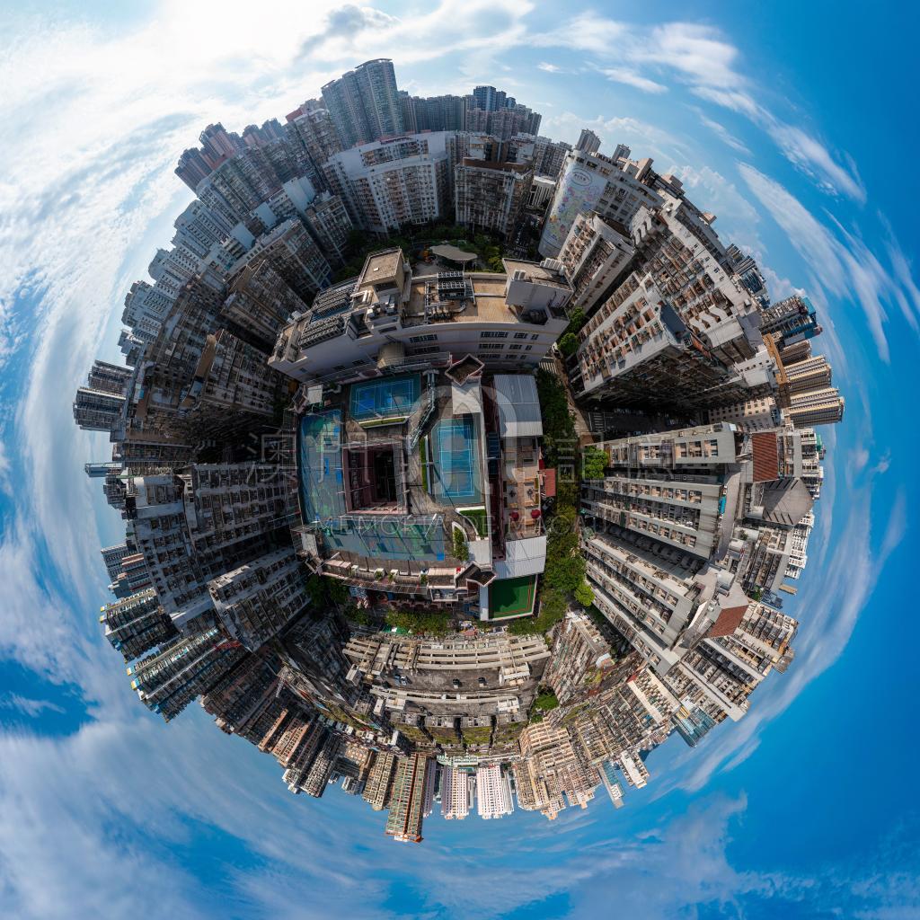 利用無人機的全景拍攝功能拍攝祐漢街市全景圖。