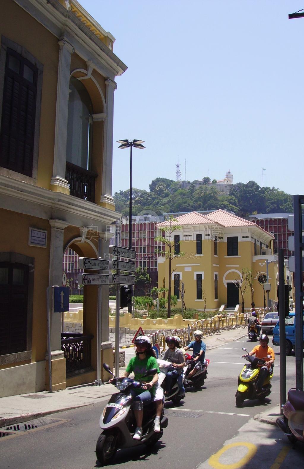 澳門地少人多,道路狹窄,一般人都會以電單車代步節省時間,相片為2007年的交通情況,背景中還可見到修建中的塔石廣場行車隧道。
