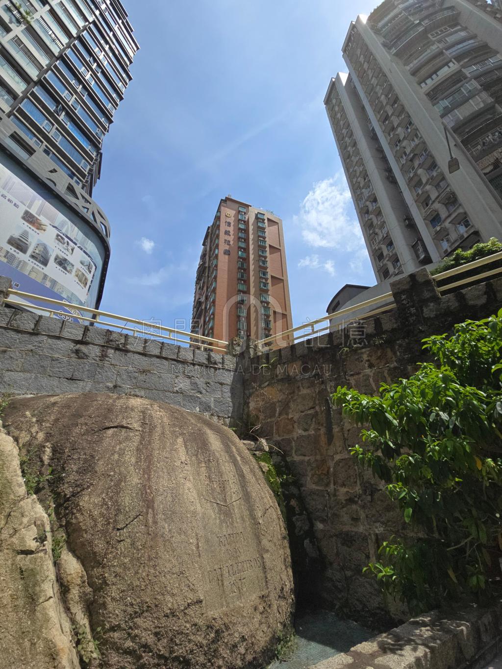 刻有葡國徽號的石塊,現已被周圍的高樓大厦包圍,失去它的歷史作用。