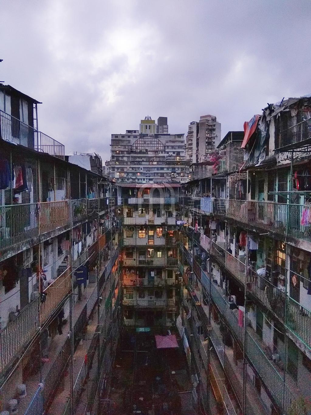 它是一幢旧式的住宅大楼,建于上世纪60年代,论破旧程度,两栋楼半斤八两,半个世纪的风霜给它们留下了斑驳痕迹, 一代又一代的住户用快乐的色彩装点了它,使它成为澳门秘境里一道独特的风景线。 色彩永不重样的栏杆,像是上帝打翻了颜料盘,很随意,但走廊上小东西挺多,地上摆放着垃圾篓,鞋柜,盆栽;天上挂着菜篮子,衣服,不时还会遭遇裤管攻击。碎花窗帘后,几位大爷一边搓着麻将一边朗声交谈,笑声传出,是大城市里极为稀缺的邻里情。