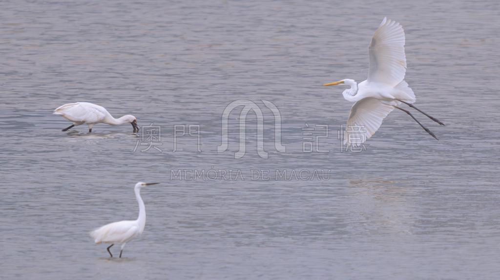黑臉琵鷺,大白鷺,小白鷺同框