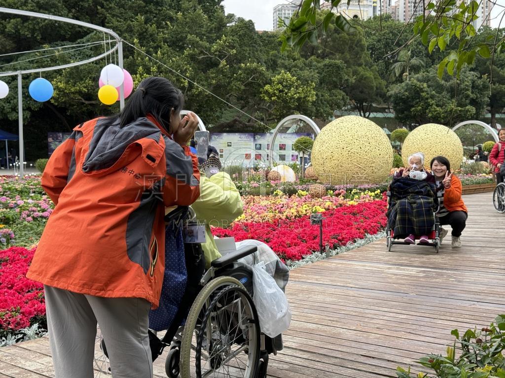 院舍的長者們在護工陪伴下逛花展,感受自然環境的美好,開心拍照留下溫馨時刻。