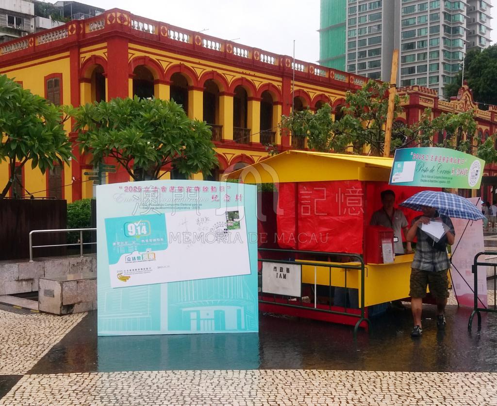 選舉宣傳日的紀念封,在風雨天氣下,仍能吸引不少人到訪領取。郵上郵票,便可以蓋上紀念郵戳。