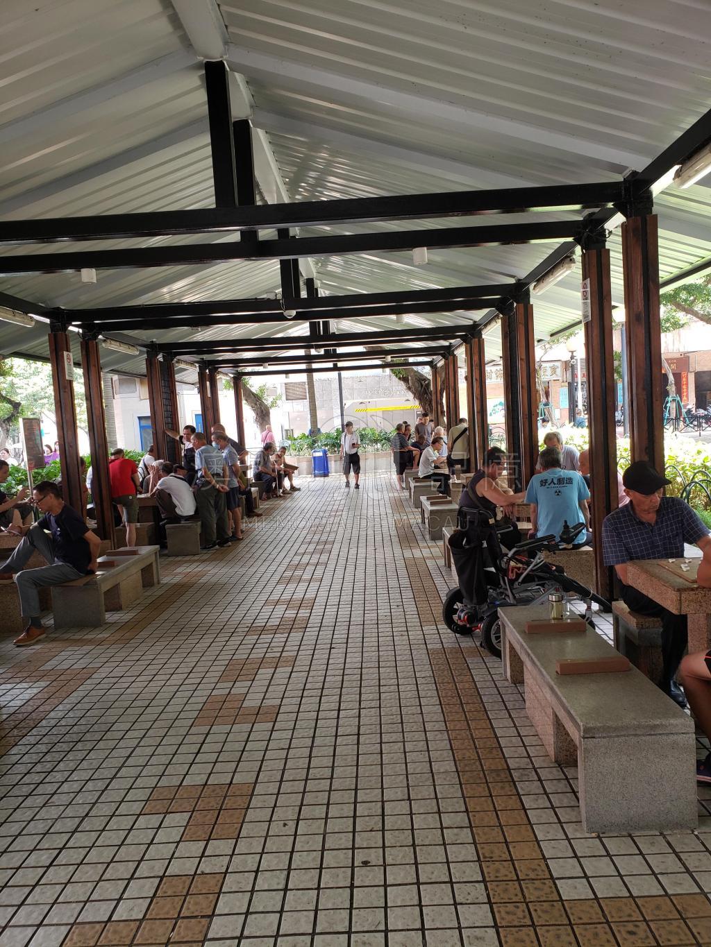 以前的三角花有涼亭休息,現在已經改變成有蓬走廊,供人休息和下棋♟️,是退休人士的好去處所。