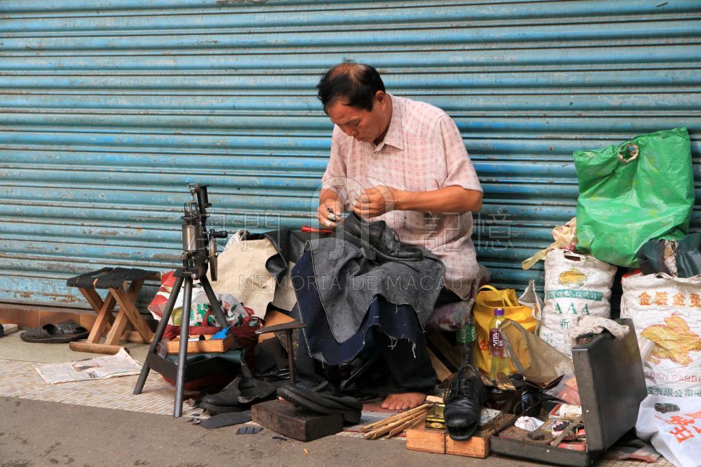 所穿皮鞋如有破損,去鞋店修補,亦有補鞋匠在街頭路邊擺檔替人修補鞋,賺取微薄收入,隨著時代發展,在本澳此類街頭補鞋行業已很少人入行。