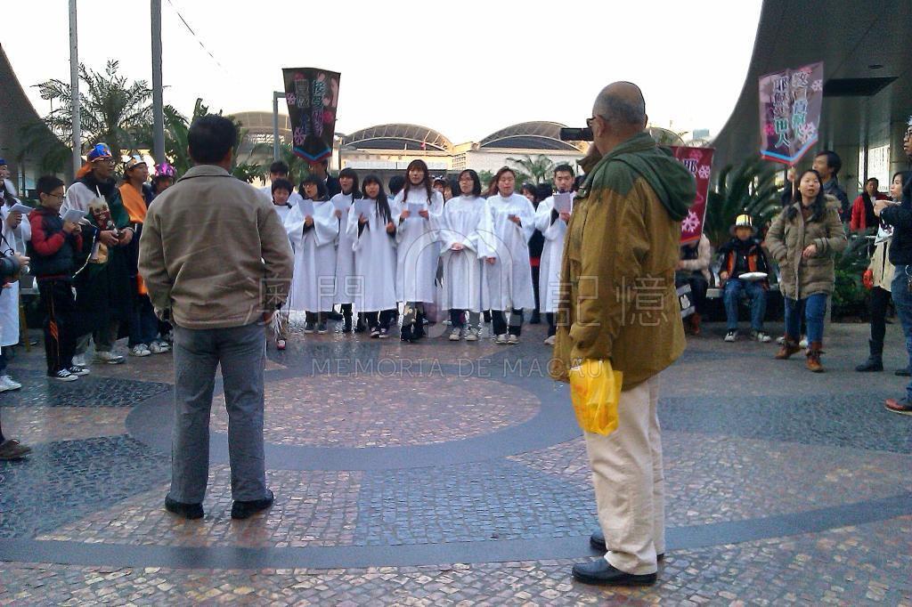 模仿當年天使向伯利恆郊外的牧羊人報告耶穌降生的喜訊。二月二十四日一群基督徒在關閘廣場'報佳音',唱聖詩向市民歌頌耶穌的誕生。