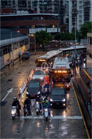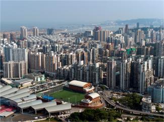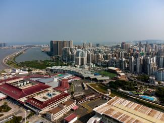 從十六甫索菲特酒店天台拍攝的新馬路夜景,遠處的新葡京酒店與舊城區燈色相輝影