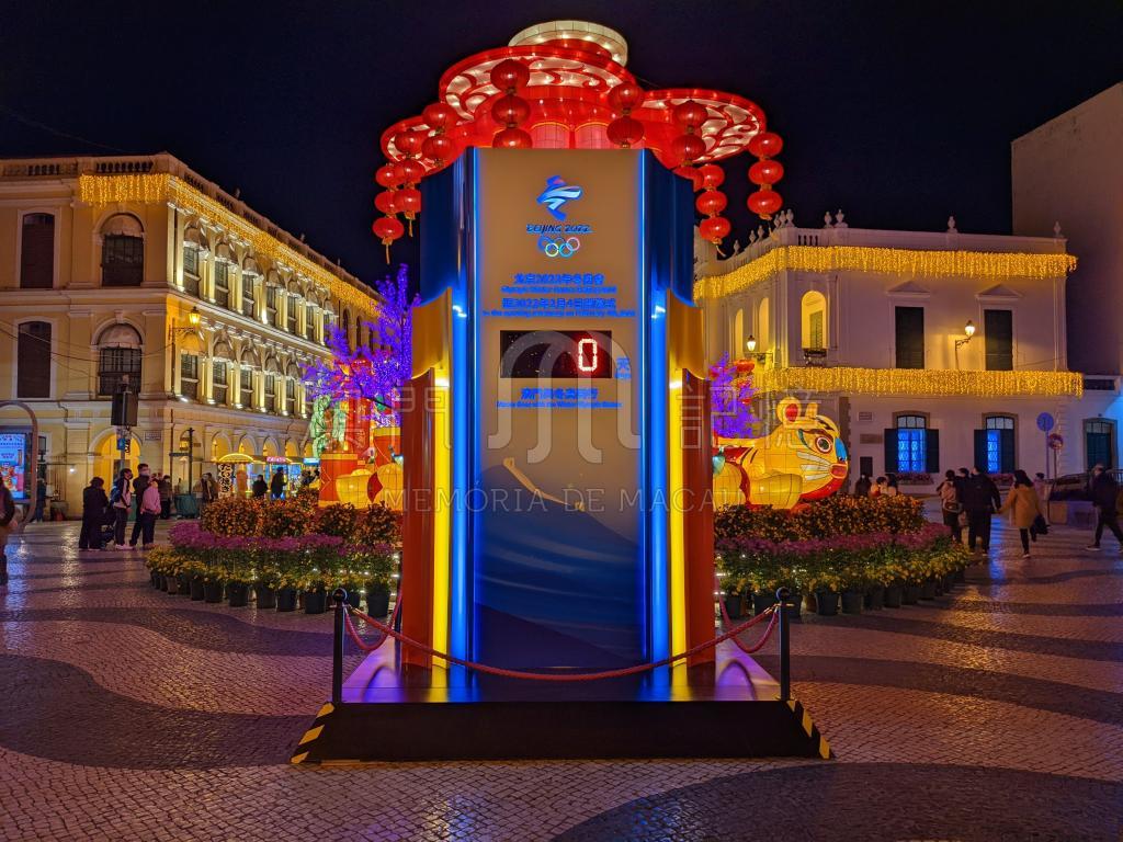 於議事亭前地的北京冬奧倒數牌。