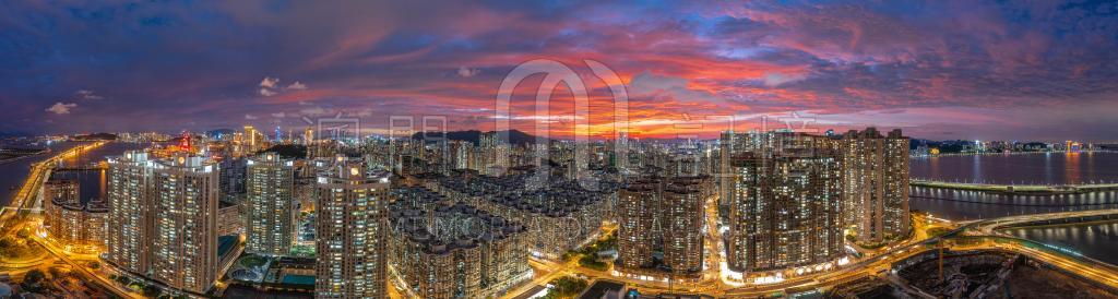 夕陽西下,華燈初上,黑沙環新填海區上的萬家燈火發出與彩雲比美的亮麗燈光。