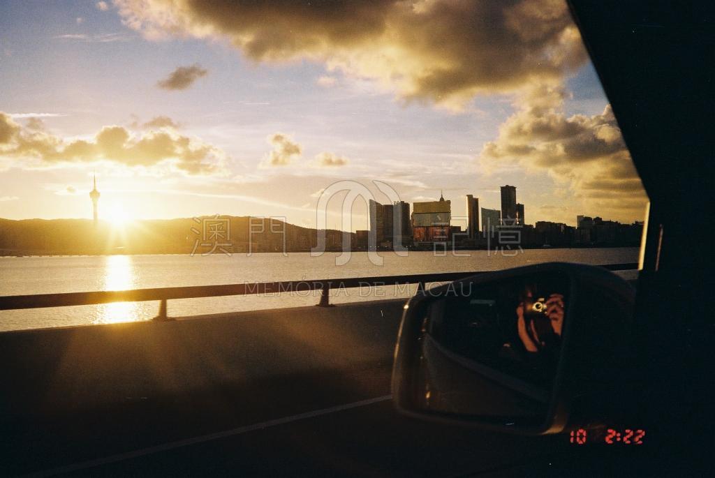 於友誼大橋上拍攝觀光塔及新口岸的日落景象