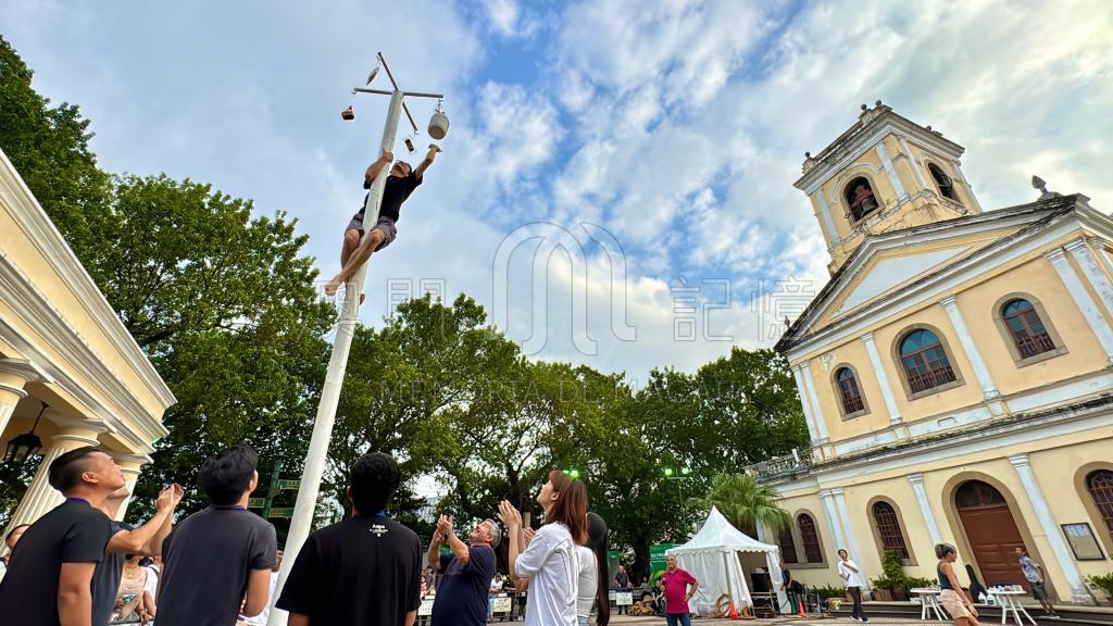 葡韻嘉年華始辦於1998年,發展至今已成為多個葡語族群相互分享及中葡文化交流的品牌活動。嘉年華設有一系列適合不同年齡層人士參與的葡萄牙傳統遊戲,圖為參與者成功挑戰爬竹竿遊戲。