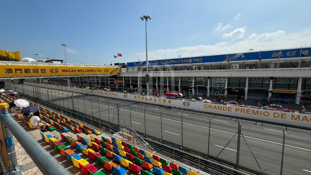 這是攝於第70屆澳門格蘭披治大賽車觀眾席上的視覺,剛好賽事暫停了,但看着周邊的椅子顏色繽紛心情也很愉快。