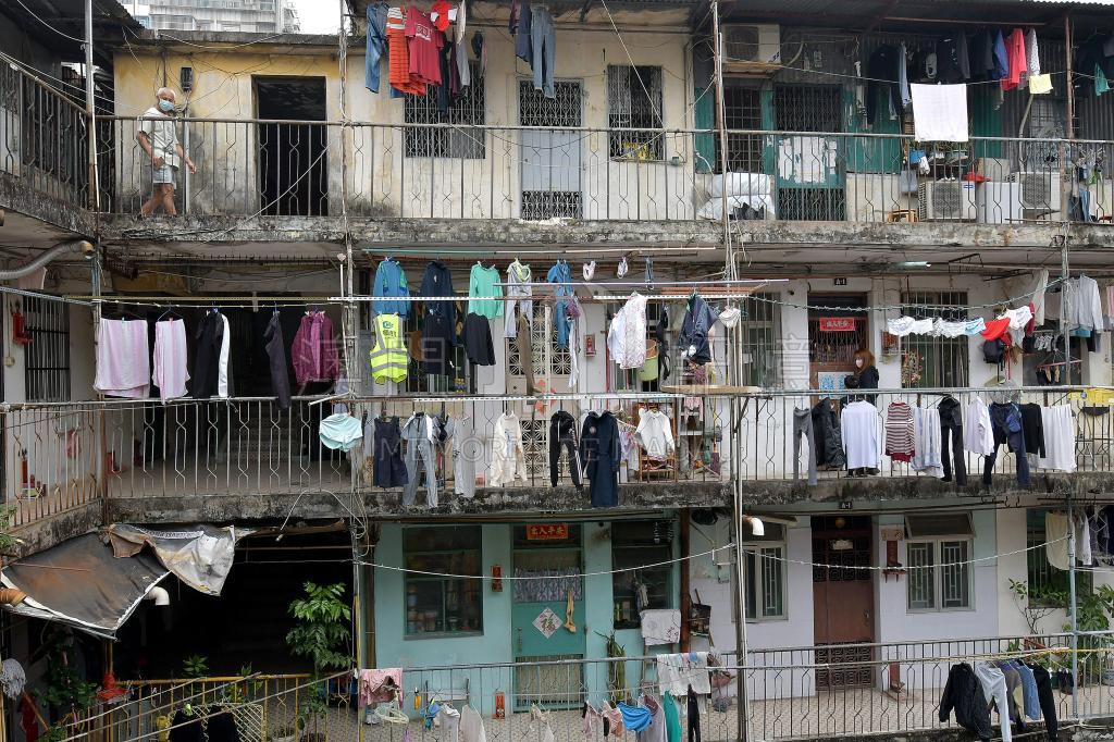 沒有現時新建大厦的完善設備,新美安大厦居民都是把清洗乾淨的衣服涼曬在門口騎樓上,是黑沙環舊區獨有的特色。