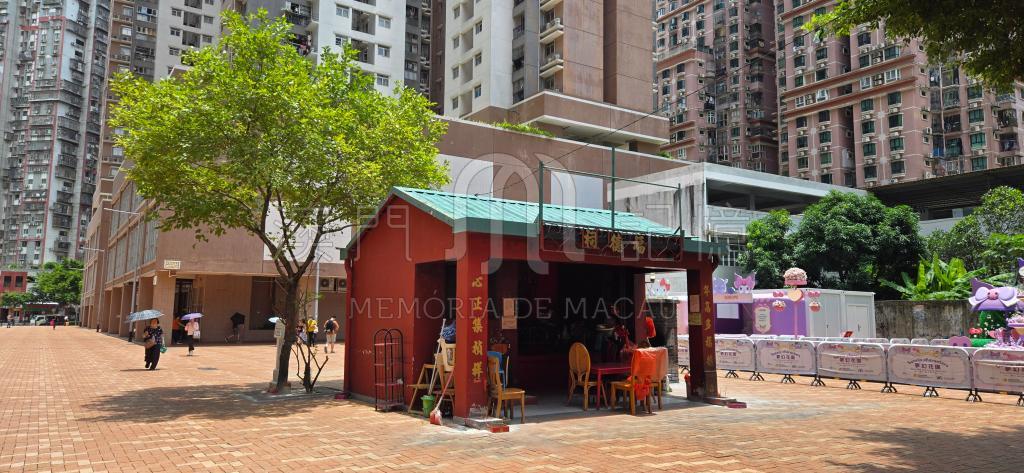 青洲福德祠,是鬧市中的小廟宇,和周邊的高樓大廈相比,顯得特別渺小。小廟走廊的柱子上,有一幅對聯:「年高多福德;心正集禎祥」,把廟名鑲嵌在內,小廟的廊簷下,還擺放有桌椅。