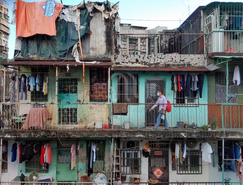 它是一幢旧式的住宅大楼,建于上世纪60年代,论破旧程度,两栋楼半斤八两,半个世纪的风霜给它们留下了斑驳痕迹, 一代又一代的住户用快乐的色彩装点了它,使它成为澳门秘境里一道独特的风景线。 色彩永不重样的栏杆,像是上帝打翻了颜料盘,很随意,但走廊上小东西挺多,地上摆放着垃圾篓,鞋柜,盆栽;天上挂着菜篮子,衣服,不时还会遭遇裤管攻击。碎花窗帘后,几位大爷一边搓着麻将一边朗声交谈,笑声传出,是大城市里极为稀缺的邻里情。