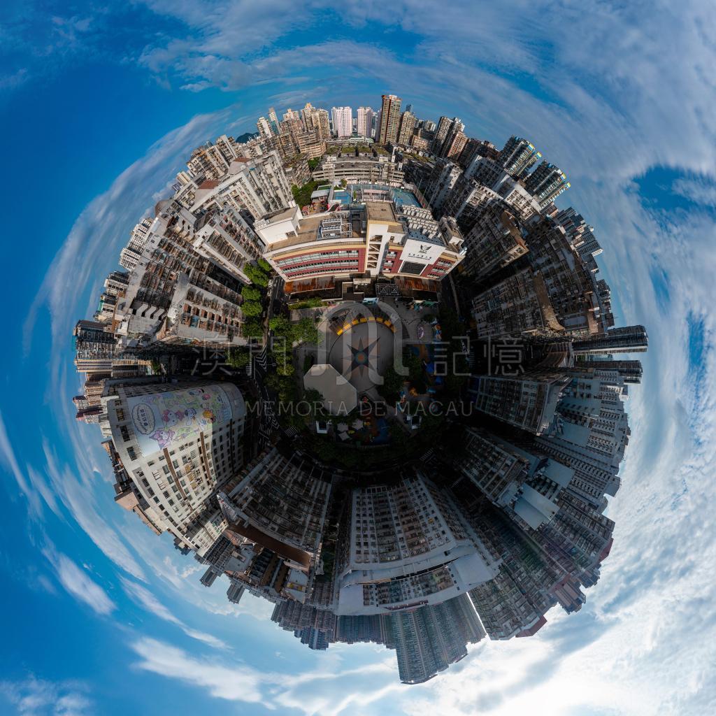 利用無人機的全景拍攝功能拍攝祐漢街市全景圖;祐漢市場是集街市、固定小販區、市政公園、體育場、停車場及社區活動中心於一身。