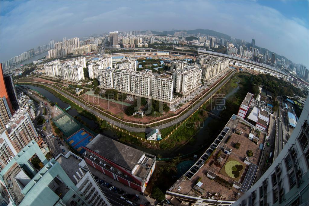 青州鴨涌河分隔拱北與澳門,圖中央位置原為澳門批發市場,今已改建為連接澳門拱北之青茂口岸