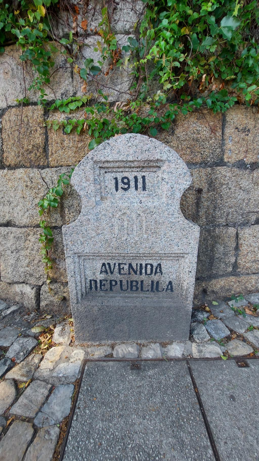 民國大馬路的舊式街牌,上寫了街道開闢的年份,這是極少數保留下來石製街牌。