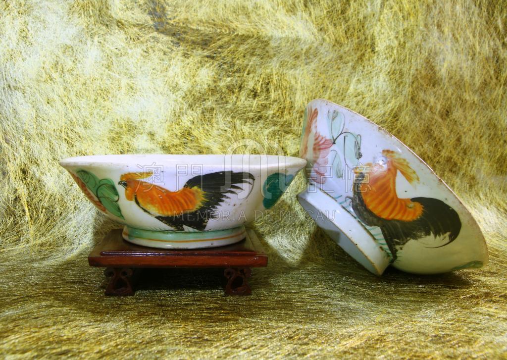 公雞碗使用有長久歷史。約上世紀60年代在本澳最為盛行,每隻碗的公雞圖案是經人手繪畫,而碗制作較為粗糙,所以大致基層市民使用。現這類手繪公雞碗已沒有人制作了,成為一件收藏品。