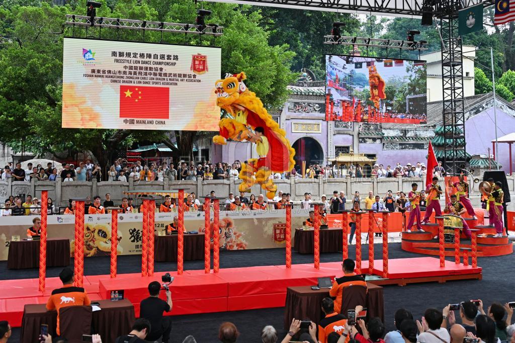 觀眾在媽閣廟前地欣賞南獅賽事,可飽覽融合不同地區文化特色的舞獅運動,感受獨特的醒獅文化。