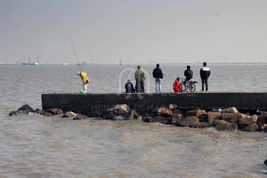 市民在黑沙環海濱公園堤圍上觀看快將進行填海工程的對岸,幻想著將來美麗的環境。