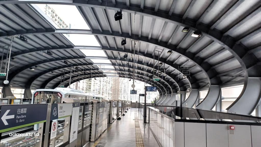 相中是澳門輕軌氹仔等候區,輕軌在2019年開通,輕軌系統所採用的膠輪列車以電力推動,具有低運作聲音及零廢氣排放等環保特質。